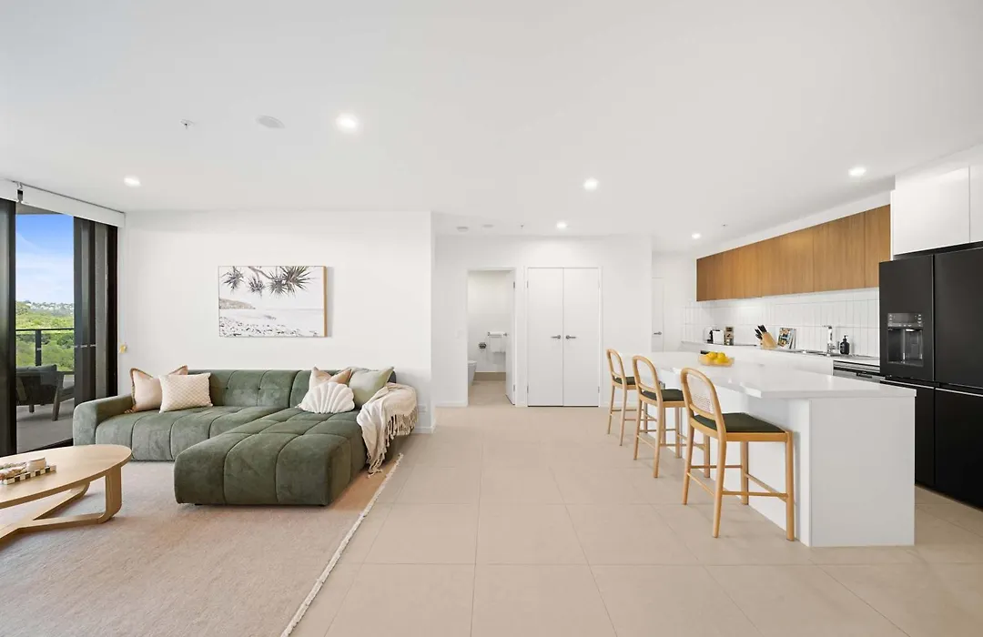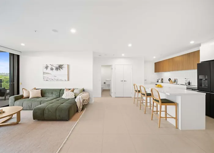 The Corso - Sophisticated Living With Waterway Views Apartment offers an equipped kitchen with an oven and a dishwasher. 125 m² The Corso - Sophisticated Living With Waterway Views Apartment is in close proximity to Maroochydore Road at Homemaker Centre bus stop.